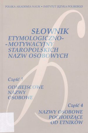 Bibliogr. - Cz. 2 poz. 14018/2000. - Cz. 3, Odmiejscowe nazwy osobowe / oprac. Zofia Kaleta ; przy współudz. Elżbiety Supranowicz i Janiny Szymowej. Cz. 4, Nazwy osobowe pochodzące od etników / oprac. Elżbieta Supranowicz